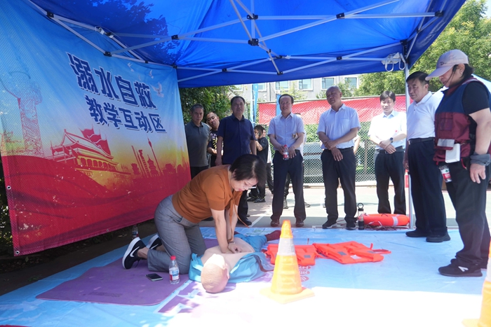 演練結(jié)束后,舉辦方在大廈籃球場開啟安全咨詢體驗(yàn)活動(dòng)。整個(gè)活動(dòng)共設(shè)置了6個(gè)項(xiàng)目,分別為擁擠踩踏應(yīng)急處置體驗(yàn)區(qū)(充氣帳篷)、消防隱患排查試驗(yàn)區(qū)、電動(dòng)車電池穿刺爆燃體驗(yàn)裝置、溺水自救互救教學(xué)培訓(xùn)區(qū)、醉酒交通AR模擬體驗(yàn)、安全標(biāo)志互動(dòng)區(qū)?;顒?dòng)現(xiàn)場氣氛熱烈,盡管天氣炎熱,但絲毫沒有減弱大家體驗(yàn)掌握應(yīng)急技能的熱情。